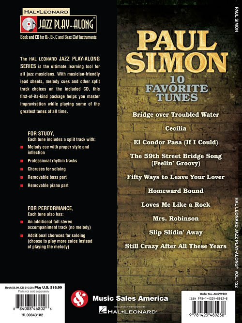 Artist: Paul Simon Paul Simon Jazz Play-Along Volume 122 Publisher: Music Sales America Category: Band/Orchestra/Ensemble Series: Jazz Play Along Format: Softcover with CD For use with all B-flat, E-flat, Bass Clef and C instruments, the Jazz...Regular price $20.99