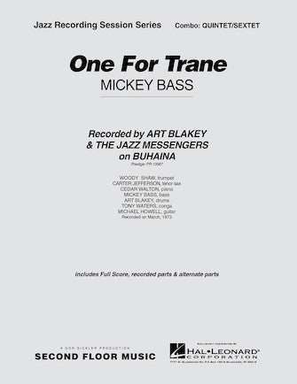 Composer: Mickey Bass One for Trane Quintet/Sextet 2 Horns plus Rhythm (Grade 4-5) (Bass) (2 or 3 Horns) Inventory # : 00000818 UPC: 73999008180 Width: 8.5" Length: 11" Height: 0.203" Product Weight: 0.5 lbs.Regular price $29.99 -