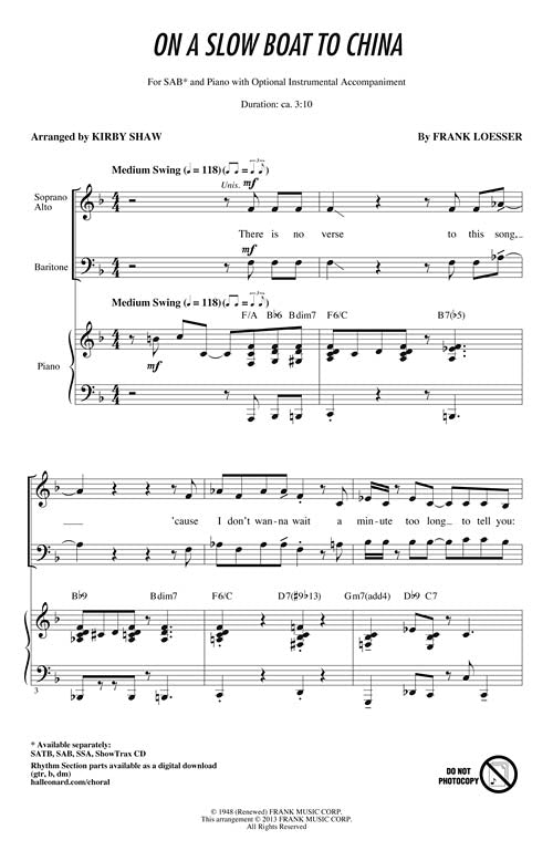 On A Slow Boat To China Jazz Chorals Sab Frank Loesser