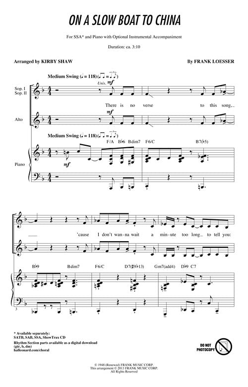 On A Slow Boat To China Jazz Chorals Ssa Frank Loesser