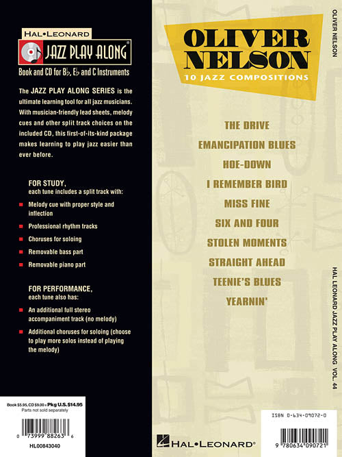 Artist: Oliver Nelson Oliver Nelson Jazz Play-Along Volume 44 Publisher: Hal Leonard Category: Solo Instrumental Series: Jazz Play Along Format: Softcover with CD For use with all Bb, Eb and C instruments, the Jazz Play-Along Series...Regular price $20.99 -