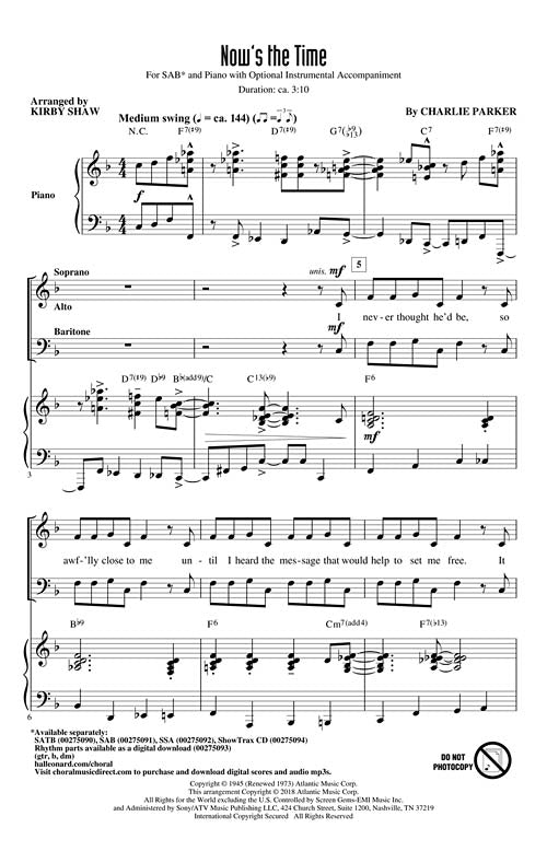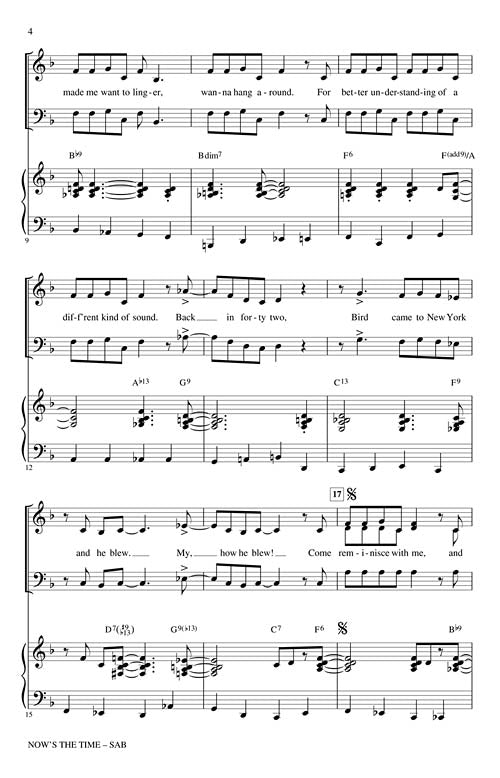 Nows The Time Jazz Chorals Sab Charlie Parker