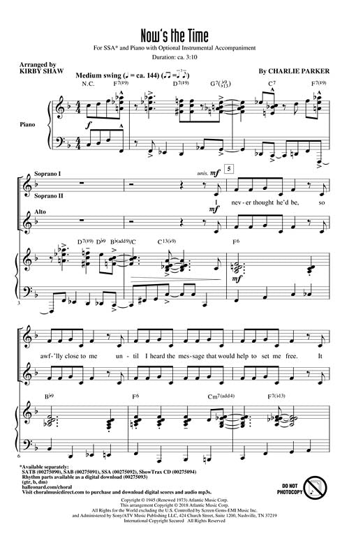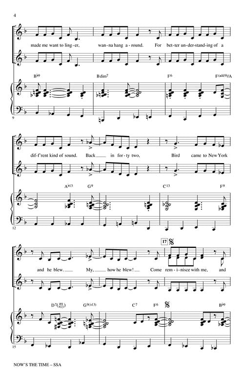 Nows The Time Jazz Chorals Ssa Charlie Parker