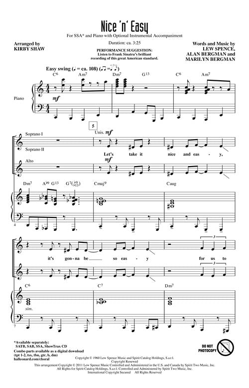 Nice 'n' Easy Composer: Frank Sinatra arr. Kirby Shaw Publisher: Category: Choral Series: Jazz Chorals Format: Voicing: SSA Your jazz singers will strut their stuff with this Sinatra standard from 1960! Nice 'n' easy is just...Regular price $22.99 -