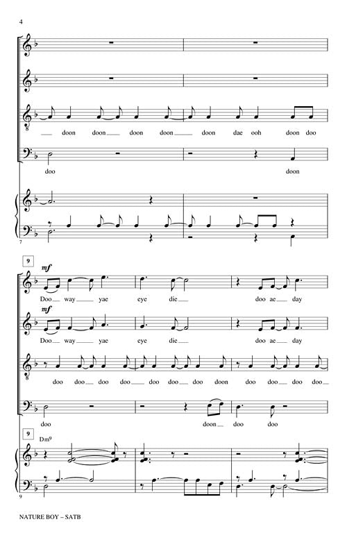 Nature Boy Composer: Eden Ahbez arr. Paris Rutherford Publisher: Hal Leonard Category: Choral Series: Jazz Chorals Format: Octavo Voicing: SATB First recorded by Nat King Cole and since covered by pop and jazz singers and ensembles...Regular price $27.99 -