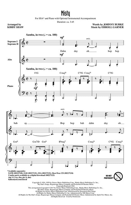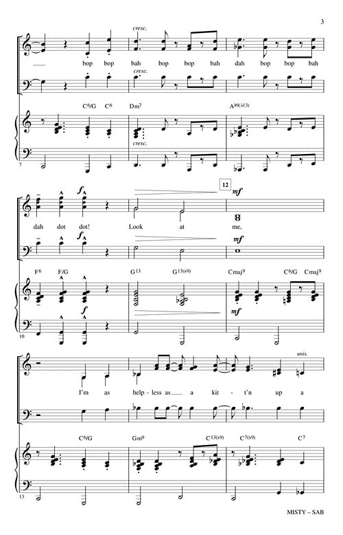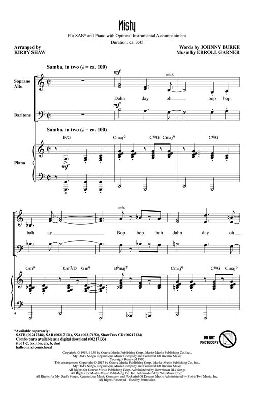 Misty Octavo SAB Jazz and pop groups will enjoy bringing this jazzy samba setting of this standard to their audiences. A fresh treatment and excellent change of pace! Inventory # : 00217131 UPC: 888680666248 Width: 6.75"...Regular price $27.99 -