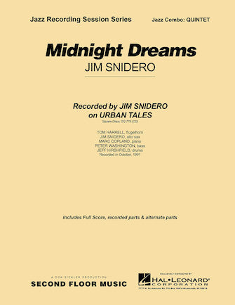 Composer: Jim Snidero Midnight Dreams Quintet 2 Horns plus Rhythm (Grade 4-5) (Snidero) Inventory # : 00000656 UPC: 73999006568 Width: 8.5" Length: 11" Height: 0.127" Product Weight: 0.3 lbs.Regular price $29.99 -