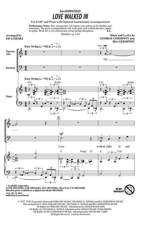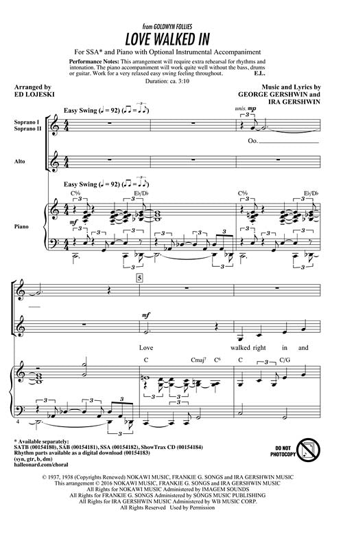 Love Walked In Jazz Chorals Ssa George Gershwin