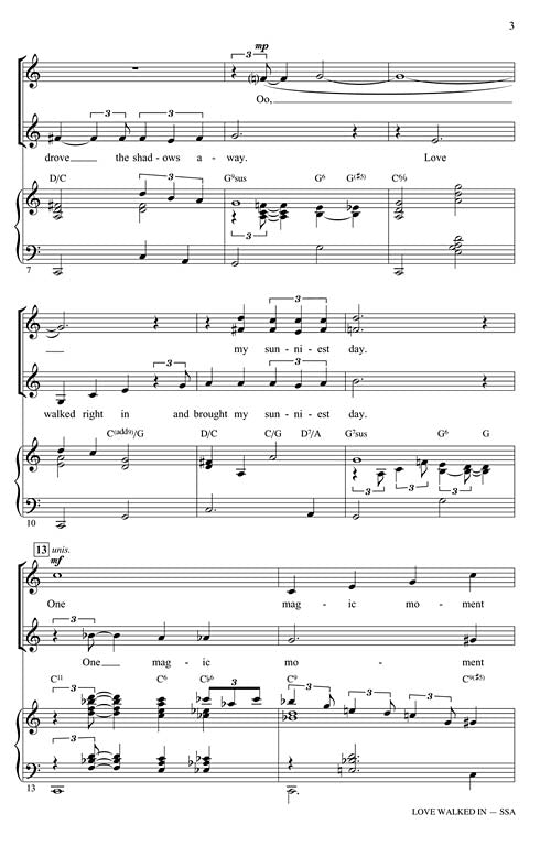 Love Walked In Octavo SSA This Gershwin classic is set in an easy swing filled to the brim with nonchalant charm and optimism. A great selection for jazz, pop and concert choirs in a program of...Regular price $23.99 -