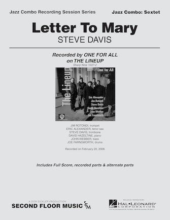 Composer: Steve Davis Letter to Mary Sextet Inventory # : 00001098 UPC: 884088145507 Width: 8.5" Length: 11" Height: 0.21" Product Weight: 0.4 lbs.Regular price $29.99 -