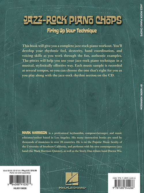 Author: Mark Harrison Jazz-Rock Piano Chops Firing Up Your Technique Softcover with CD Get a complete jazz-rock piano workout as you develop your rhythmic feel, dexterity, hand coordination and voicing skills as you work through the...Regular price $20.99