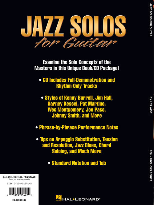 Author: Les Wise Jazz Solos for Guitar REH Pro Licks Book with Online Audio Publisher: Hal Leonard Category: Guitar, Bass & Fretted Series: REH Publications Format: Softcover Audio Online Guitar Tab: YES Examine the solo concepts...Regular price $23.99 -