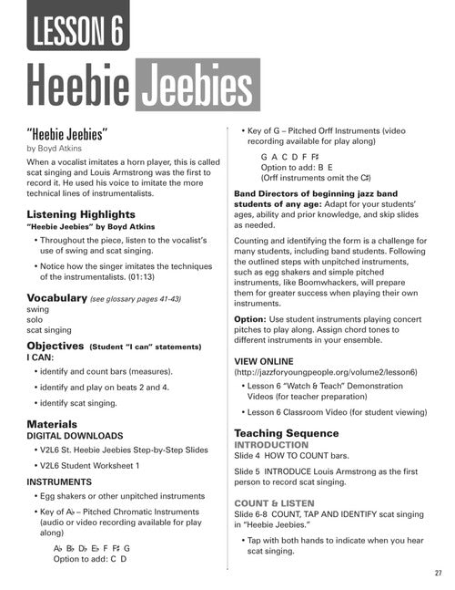 Jazz for Young People, Vol. 2, a Teacher's Resouce Guide To Louis Armstrong Publisher: Hal Leonard Category: Choral Series: ExpressiveArts Format: Softcover Media Online Jazz for Young People brings the language of jazz to you and...Regular price $53.99 -