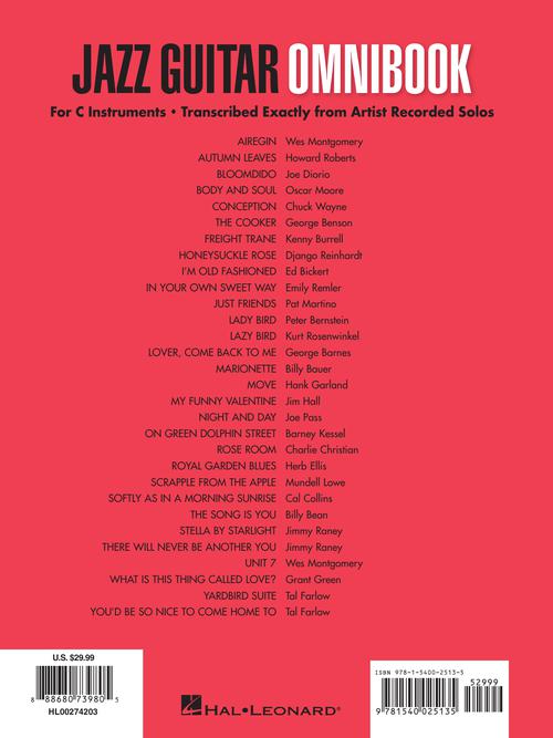 Artist: Various Jazz Guitar Omnibook Artist Solos Transcribed for All C Instruments Publisher: Hal Leonard Category: Solo Instrumental Series: Jazz Transcriptions Format: Softcover Guitar Tab: YES The Jazz Guitar Omnibook features transcriptions for all C instruments...Regular price $41.99 -