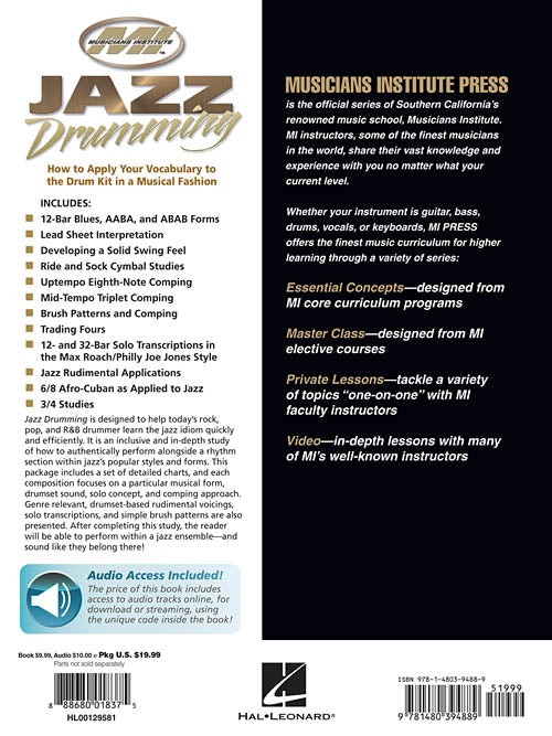 Author: Donny Gruendler Jazz Drumming Essential Concepts Series Softcover Audio Online Jazz Drumming is designed to help today's rock, pop, and R&B drummer learn the jazz idiom quickly and efficiently. It is an inclusive and in-depth...Regular price $23.99 -