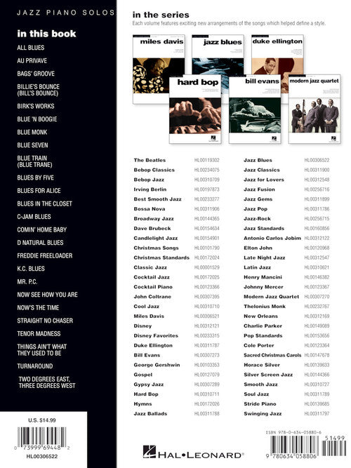 Composer: Various Jazz Blues - 2nd Edition Jazz Piano Solos Series Volume 2 Publisher: Hal Leonard Category: Keyboard & Piano/Vocal/Guitar Series: Jazz Piano Solos Format: Softcover This second edition features piano solo arrangements with chord names...Regular price $27.99