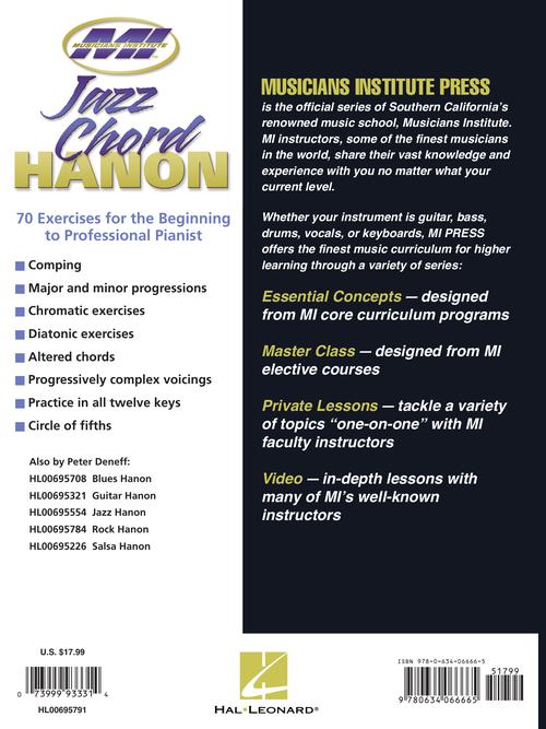Author: Peter Deneff Jazz Chord Hanon Private Lessons Series Publisher: Musicians Institute Press Category: Keyboard & Piano/Vocal/Guitar Series: Musicians Institute Press Format: Paperback The sixth book in Peter Deneff's popular Hanon series, Jazz Chord Hanon provides...Regular price $27.99 -