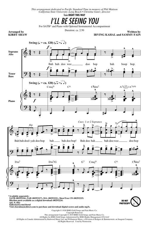 Ill Be Seeing You Satb Bing Crosby
