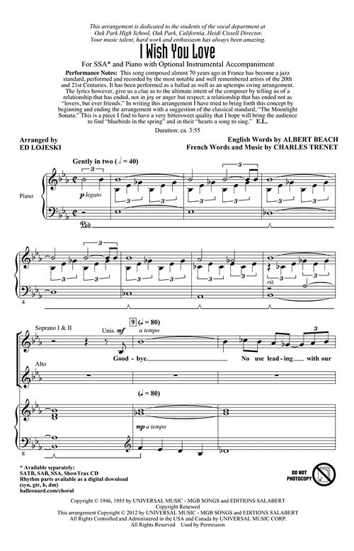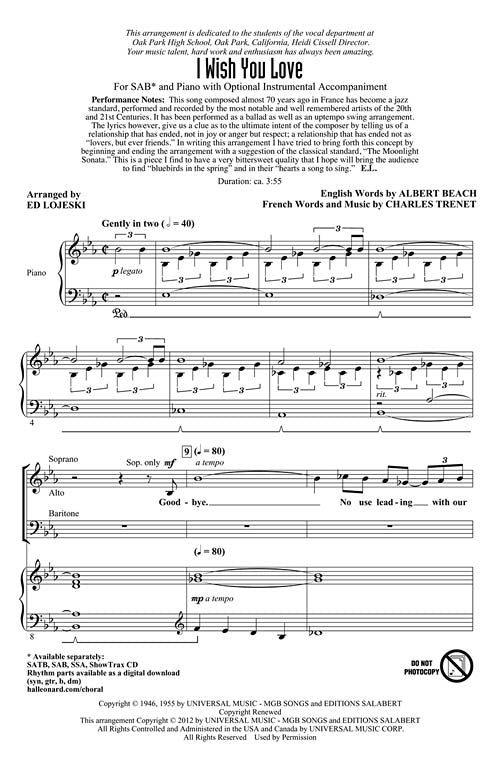 I Wish You Love SAB Arranger: Ed Lojeski