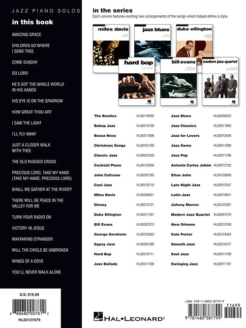 Composer: Various Gospel Jazz Piano Solos Series Volume 33 Softcover A unique collection of jazzy piano solo arrangements of 20 beloved Gospel favorites, including: Amazing Grace · Do Lord · He's Got the Whole World in...Regular price $23.99 -