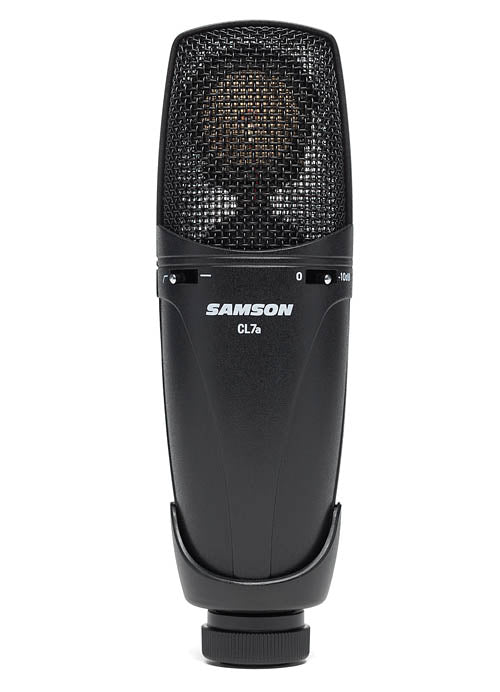 Samson CL7a is the perfect large-capsule condenser solution for the home, project, or professional studio. Featuring a 1.1 gold-sputtered capsule with an ultra-thin 3-micron diaphragm, the CL7a delivers a smooth and balanced sound. Use the CL7a for capturing an expressive vocalist, and when preserving the presence and tonality of an acoustic instrument. Activating the high-pass filter reduces rumble and wind noise, and a 10dB pad prevents signal overloads. The cardioid pickup pattern provides enhanced isolation by rejecting off-axis sounds from other instrument sources. Inside the die-cast body, an internal shock-mount system insulates the capsule from mechanical noises. Features: · Large 1.1 inch. internally shock-mounted capsule with 3-micron gold sputtered diaphragm · Cardioid pick-up pattern · Smooth and balanced sound reproduction · 20Hz-20kHz frequency response · Switchable high-pass filter, 12dB per octave at 100Hz · Switchable 10dB pad for handling extremely high SPL · 36-52 Volt phantom power operation · Solid die cast construction