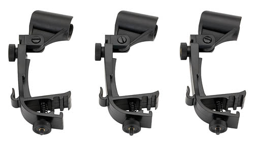 This 3-clip set allows for easy clip on microphone rim mounting for most drum and percussion instruments. The clips allow for adjustable height and swivel.