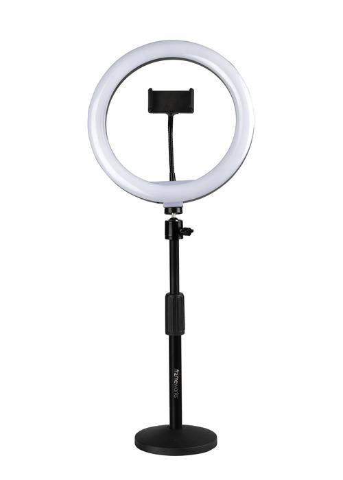 10-inch Led Desktop Ring Light Stand With Phone Holder And Compact Weighted Base Publisher: Gator Cases Category: Music Related Products Series: Gator Frameworks Format: Hardware Connectors Fasteners 10-Inch LED Desktop Ring Light Stand with Phone Holder...Regular price $47.99 -
