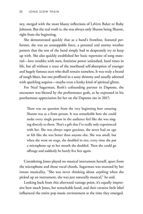 Long Slow Train The Soul Music of Sharon Jones and the Dap-Kings Softcover A lively and engaging chronicle of the triumphant rise of Sharon Jones - one of the most authentic purveyors of American soul music...Regular price $29.99 -