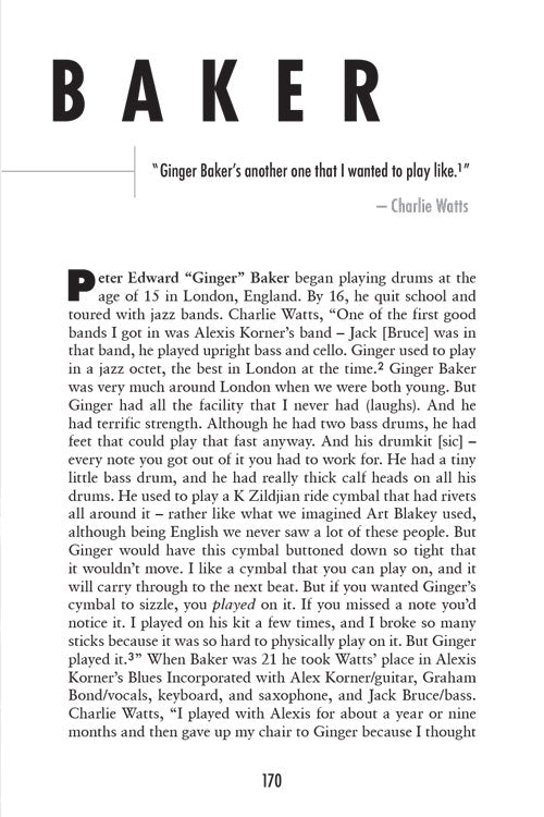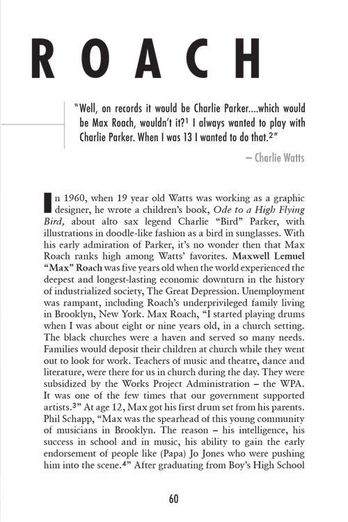 Charlie Watts' Favorite Drummers Softcover In various interviews over the past 35 years Charlie Watts has expressed admiration for the talents of many drummers. But the fundamental connections of those he has noted as his favorites,...Regular price $29.99 -