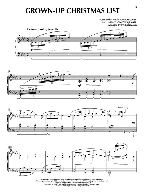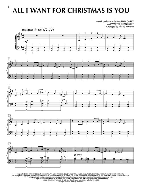 14 songs of the season expertly arranged by Phillip Keveren. Includes: All I Want for Christmas Is You · All I Want for Christmas Is My Two Front Teeth · Christmas in Killarney · Do They Know It's Christmas? (Feed the World) · Do You Want to Build a Snowman? · Grown-Up Christmas List · Happy Xmas (War Is Over) · Have Yourself a Merry Little Christmas · The Little Drummer Boy · Nuttin' for Christmas · Santa Baby · Santa, Bring My Baby Back (To Me) · Sleigh Ride · Winter Wonderland.