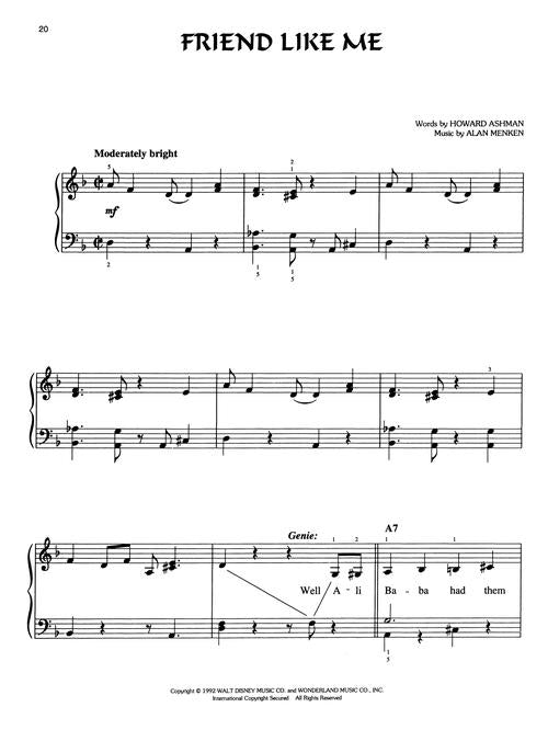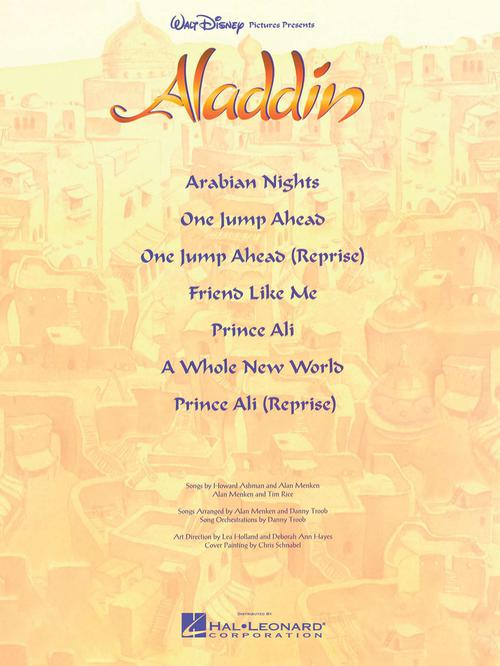 Matching folio to Disney's animated film featuring songs from Alan Menken, Howard Ashman and Tim Rice. 7 songs in all, including: One Jump Ahead · Prince Ali · Friend Like Me · A Whole New World · and more. Complete with full-color art from the movie.