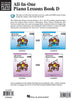 The All-In-One Piano Lessons Books A, B, C, and D combine selected pages from the original Piano Lessons, Technique, Solos, Theory Workbook, and Practice Games into one easy-to-manage book. Book D is the equivalant to the second half of Book 2. A perfect choice for beginning group or private instruction, the book with online audio offers students a variety of styles and moods, and includes the best ever teacher accompaniments. The audio is accessed online using the unique code in each book and features PLAYBACK+ tools such as tempo adjustment and looping capabilities.