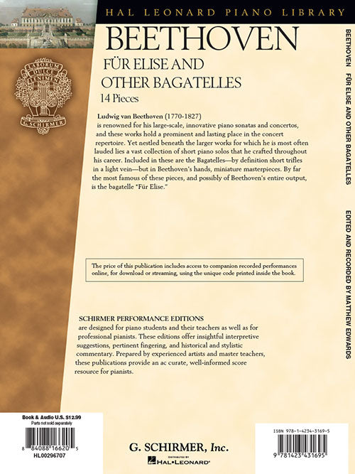 Beethoven Fur Elise And Other Bagatelles Schirmer Performance Editions