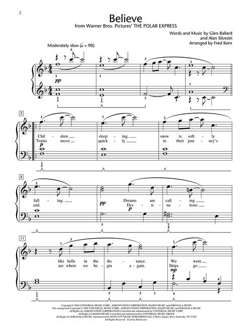 Believe From The Polar Express Hal Leonard Student Piano Library Showcase Solo