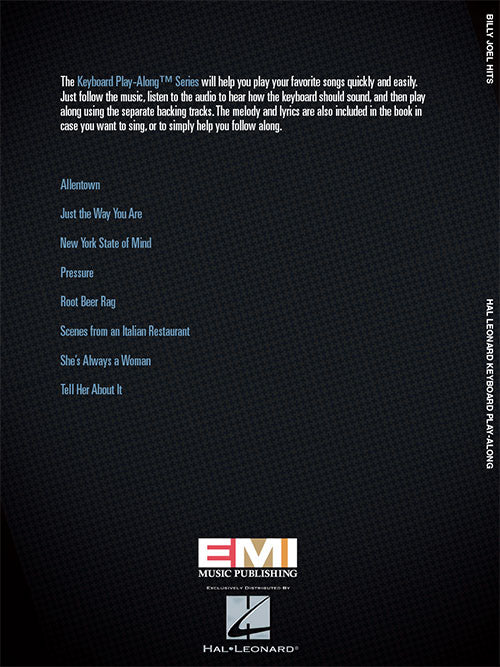The Keyboard Play-Along Series will help you play your favorite songs as played by your favorite artists quickly and easily. Just follow the music in the book, listen to the CD to hear how the keyboard should sound, and then play along using the separate backing tracks. The melody and lyrics are also included in the book in case you want to sing, or to simply help you follow along. The audio CD is playable on any CD player. For PC and Mac users, the CD is enhanced so you can adjust the recording to any tempo without changing pitch! This volume contains 8 songs: Allentown · Just the Way You Are · New York State of Mind · Pressure · Root Beer Rag · Scenes from an Italian Restaurant · She's Always a Woman · Tell Her About It.