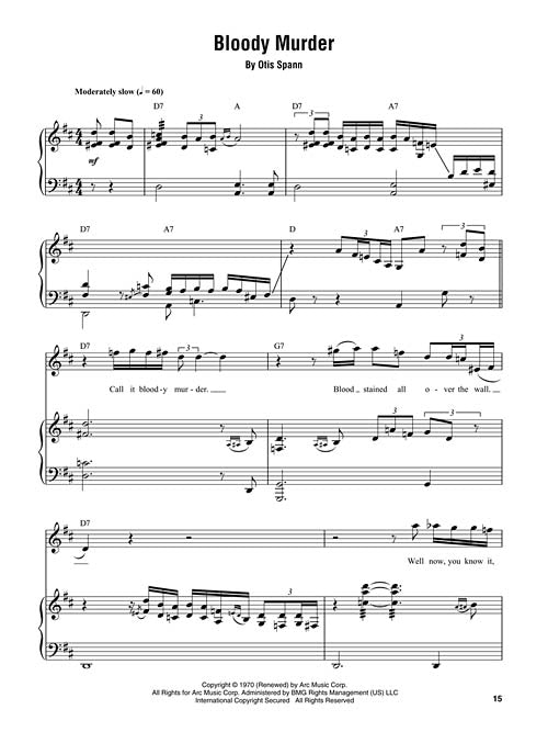 16 transcriptions that all blues fans should know, including: Big Chief (Professor Longhair) · Bloody Murder (Otis Spann) · Boogie Woogie Stomp (Albert Ammons) · Chicago Breakdown (Big Maceo) · Confessin' the Blues (Jay McShann) · Driftin' Blues (Charles Brown) · Every Day I Have the Blues (Memphis Slim) · 44 Blues (Roosevelt Sykes) · Got My Mo Jo Working (Jay McShann) · Honky Tonk Train (Honky Tonk Train Blues) (Meade Lux Lewis) · I Just Want to Make Love to You (Otis Spann) · Mess Around (Ray Charles) · (The Original) Boogie Woogie (Pinetop Perkins) · Swanee River Boogie (Albert Ammons) · Two Fisted Mama (Katie Webster) · Worried Life Blues (Big Maceo).