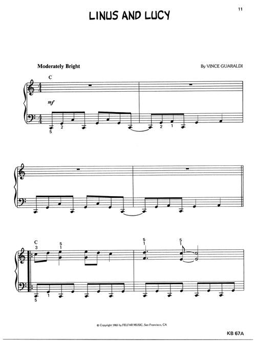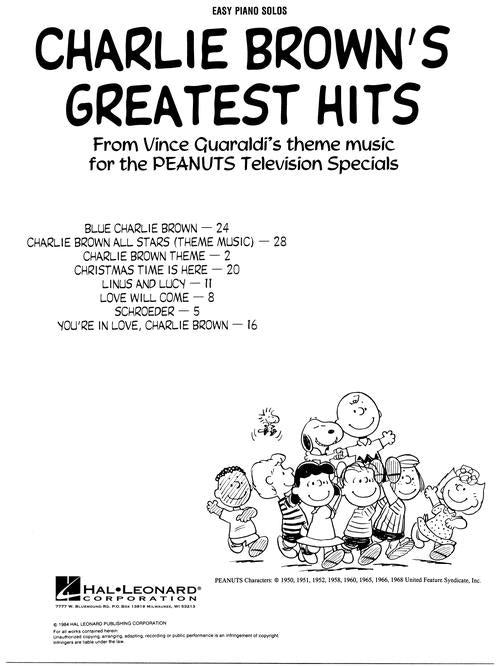 Easy piano arrangements of 8 songs: Blue Charlie Brown · Charlie Brown All Stars · Charlie Brown Theme · Christmas Time Is Here · Linus and Lucy · Love Will Come · Schroeder · You're in Love, Charlie Brown.