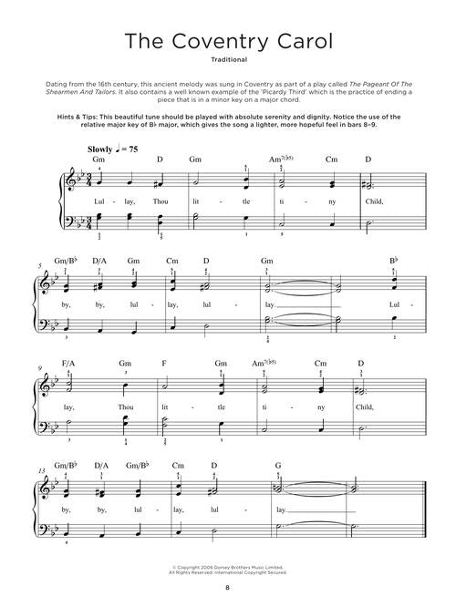 25 well-known Christmas solos in easy-to-play arrangements for piano, presented with background notes and performance tips for every song and lyrics. Songs include: Away in a Manger · The Coventry Carol · God Rest Ye Merry, Gentlemen · I Saw Three Ships · Jingle Bells · Joy to the World · O Come, All Ye Faithful · Silent Night · We Three Kings · We Wish You a Merry Christmas · and more.