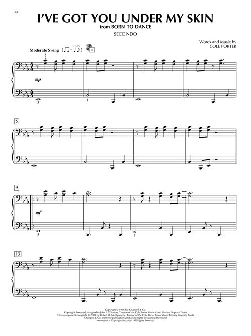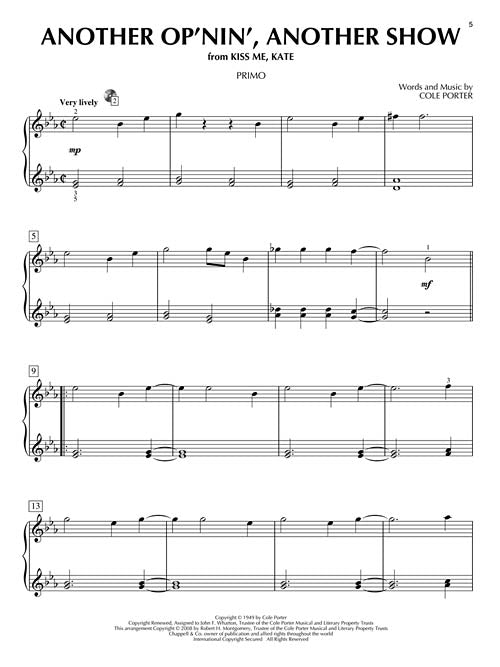 Cole Porter's classic songs are now available as piano duets! The book also comes with a CD that features separate tracks for the Primo and Secondo parts - perfect for practice and performance! 10 tunes from the legendary composer: Another Op'nin', Another Show · Easy to Love (You'd Be So Easy to Love) · From This Moment On · I Love Paris · I Love You · I've Got You Under My Skin · In the Still of the Night · It's De-Lovely · So in Love · You'd Be So Nice to Come Home To.