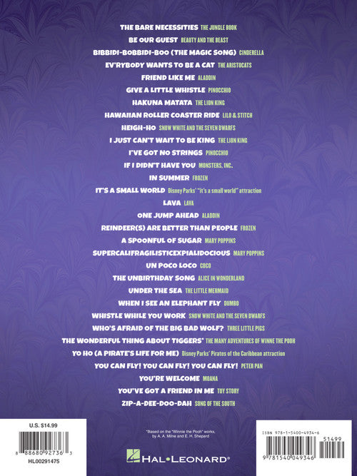 31 memorable movie hits from beloved Disney productions are presented in our patented E-Z Play® Today notation, including: Bibbidi-Bobbidi-Boo (The Magic Song) · Friend like Me · Hawaiian Roller Coaster Ride · I Just Can't Wait to Be King · Reindeer(s) Are Better Than People · A Spoonful of Sugar · Under the Sea · Whistle While You Work · You've Got a Friend in Me · and more.