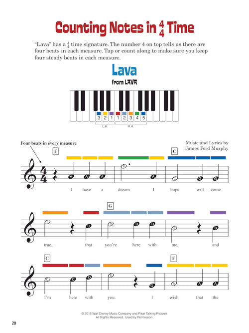 The 2nd edition of this popular activity book features new songs, new games, new puzzles and other music activities. It includes dozens of well-loved classics and popular songs, including: Almost There · The Bare Necessities · Can You Feel the Love Tonight · How Far I'll Go · I See the Light · Lava · Let It Go · You've Got a Friend in Me · and more. This book can be used by beginning keyboard players, guitarists, vocalists, and other C instrument players.