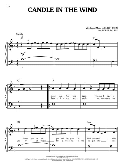 The second edition of this collection an updated songlist of 20 favorites from the Rocket Man for big-note piano, including: Bennie and the Jets · Can You Feel the Love Tonight? · Candle in the Wind · Don't Let the Sun Go down on Me · Goodbye Yellow Brick Road · I Guess That's Why They Call It the Blues · Rocket Man (I Think It's Gonna Be a Long Long Time) · Sad Songs (Say So Much) · Tiny Dancer · Your Song · and more.