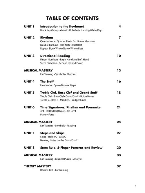 Essential Elements Piano Theory is a comprehensive course designed to help students master theory concepts. New concepts are gradually introduced in a clearly presented format, followed by sufficient and effective reinforcement. Each book features three sections of Musical Mastery which include ear training, mastery in rhythm, symbols, reading, and analysis. Students learn to apply their theoretical knowledge in a musical context through such elements as improvisation, transposition, reading lead lines and standard chord progressions. Each book concludes with a section of Theory Mastery which includes a review test and ear training. The creative and fun approach of this series applies the student's understanding of theory to real musical examples, and will enhance and supplement any method book. (NOTE: Books 1 and 2 correspond directly with the Texas Theory State Test.)