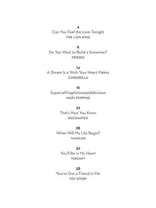Eight great Disney songs creatively arranged for piano duet! Titles: Can You Feel the Love Tonight · Do You Want to Build a Snowman · A Dream Is a Wish Your Heart Makes · Supercalifragilisticexpialidocious · That's How You Know · When Will My Life Begin? · You'll Be in My Heart · You've Got a Friend in Me. Layout: Duet parts on opposing pages.