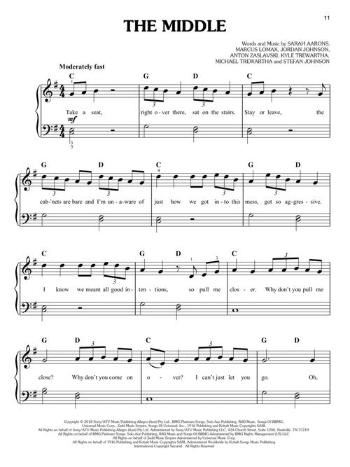 Pop Piano Hits is a series designed for students of all ages! Each book contains five simple and easy-to-read arrangements of today's most popular downloads. Lyrics, fingering and chord symbols are included to help you make the most of each arrangement. Enjoy your favorite songs and artists today! This edition contains: Feel It Still (Portugal. The Man) · Lost in Japan (Shawn Mendes) · The Middle (Zedd, Maren Morris & Grey) · Rewrite the Stars (from The Greatest Showman) · Whatever It Takes (Imagine Dragons).