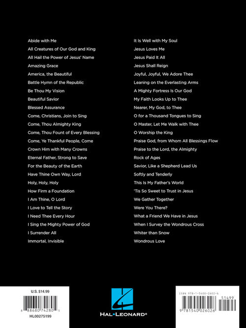 50 timeless hymns for beginning pianists to learn, including: Amazing Grace · Be Thou My Vision · Come, Thou Fount of Every Blessing · For the Beauty of the Earth · Holy, Holy, Holy · I Surrender All · Jesus Paid It All · A Mighty Fortress Is Our God · Nearer, My God, to Thee · Rock of Ages · Were You There? · and more.