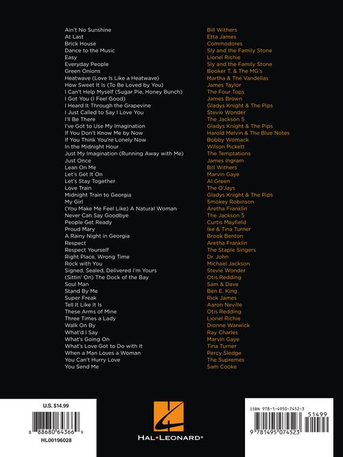 Are you ready to try your piano chops on some R&B classics? Then this book is for you! 50 songs arranged at an easier level so developing players can sound great as they expand their repertoire. Songs include: Ain't No Sunshine · At Last · Dance to the Music · Everyday People · Green Onions · How Sweet It Is (To Be Loved by You) · I Got You (I Feel Good) · I Heard It Through the Grapevine · I Just Called to Say I Love You · I'll Be There · In the Midnight Hour · Just My Imagination (Running Away with Me) · Lean on Me · Let's Get It On · Love Train · Midnight Train to Georgia · My Girl · (You Make Me Feel Like) a Natural Woman · People Get Ready · Proud Mary · Respect · Rock with You · (Sittin' On) The Dock of the Bay · Soul Man · Stand by Me · What's Going On · What's Love Got to Do with It · When a Man Loves a Woman · You Can't Hurry Love · and more.