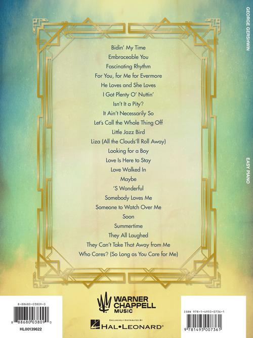 Over 20 Gershwin favorites arranged at an easier level, including: Embraceable You · Fascinating Rhythm · I Got Plenty O' Nuttin' · Let's Call the Whole Thing Off · Love Is Here to Stay · Love Walked In · 'S Wonderful · Someone to Watch over Me · Soon · Summertime · They All Laughed · They Can't Take That Away from Me · and more.