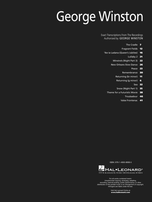 14 piano solo arrangements from Winston's rich catalog of favorites, including: The Cradle · Fragrant Fields · Lullaby 2 · New Orleans Slow Dance · Peace · Remembrance · Sea · Troubadour · Valse de Frontenac · and more.