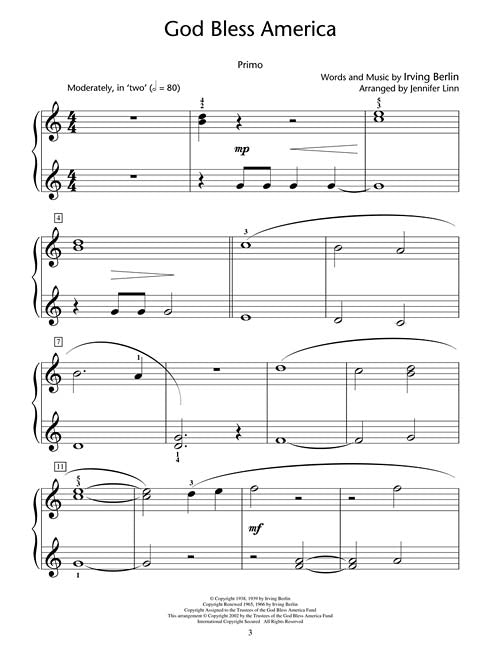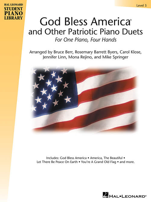 Includes terrific duet arrangements of these 6 patriotic favorites: America, The Beautiful · God Bless America · Let There Be Peace on Earth · My Country, 'Tis of Thee (America) · Stars and Stripes Forever · You're a Grand Old Flag.